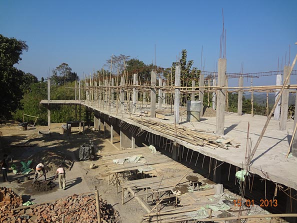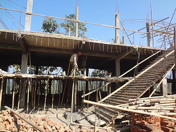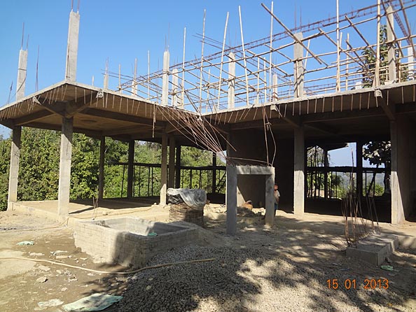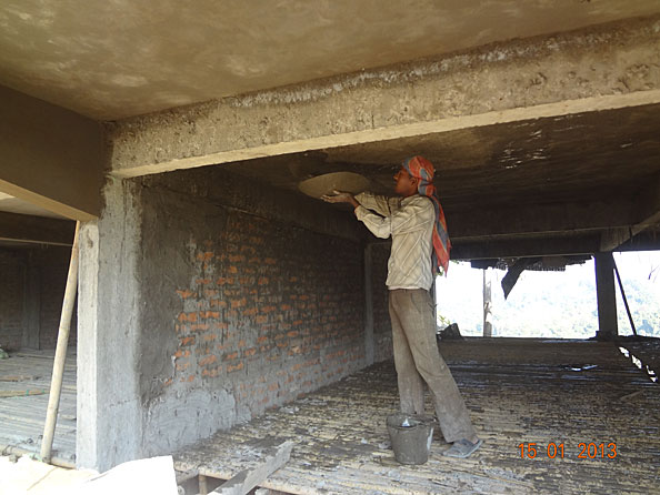 The images below show that the posts on the 2nd floor are completed, and the iron-work for the beams was in process. Most of them should have been poured by this posting. Also, the room dividers on the ground floor are done, and the plastering is being done.
